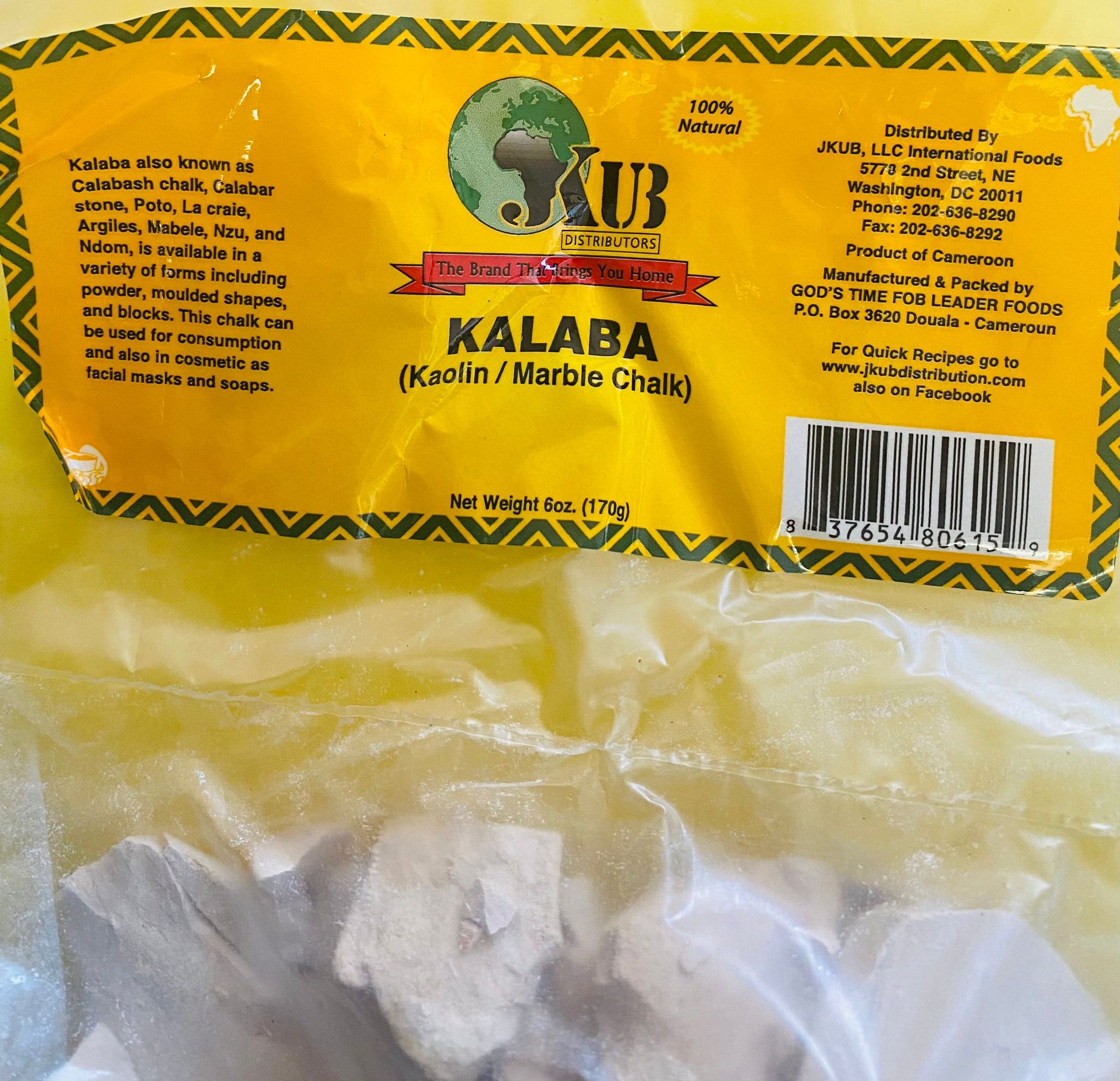 The JKUB Kalaba chalk is made from a combination of kaolin and marble, offering an ideal balance of porosity for a consistent chalk grip. It's 6oz size. also known as Calabash chalk, calabar stone, poto, la craie. from Cameroon