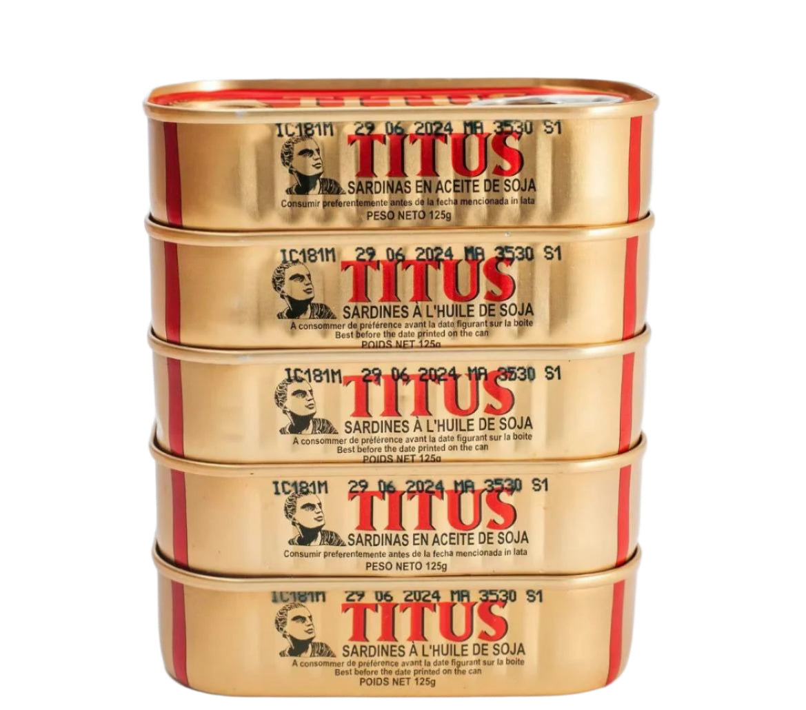 Titus Sardines in Soybean Oil 5-Pack offers a convenient supply of high-quality sardines preserved in light, heart-healthy soybean oil. Rich in omega-3 fatty acids and protein, these sardines provide a nutritious boost with a mild, smooth flavor that complements a variety of dishes. Ideal for quick meals or snacks, this pack ensures you have a versatile, shelf-stable ingredient ready to enhance salads, pastas, or sandwiches with ease and expert quality.